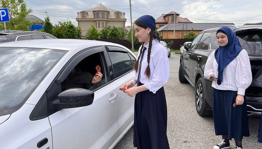 В рамках школьных мероприятий ко Дню Победы, учащиеся 7х классов приняли участие во Всероссийской акции «Георгиевская лента» #9маяденьпобеды