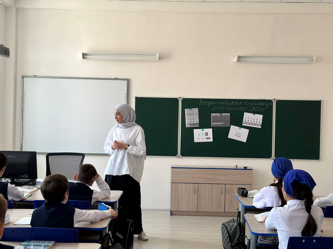 Сегодня в МБОУ «СОШ № 4 г. Грозного» прошли классные часы «Что такое школьный этап Всероссийской олимпиады школьников – 2023».